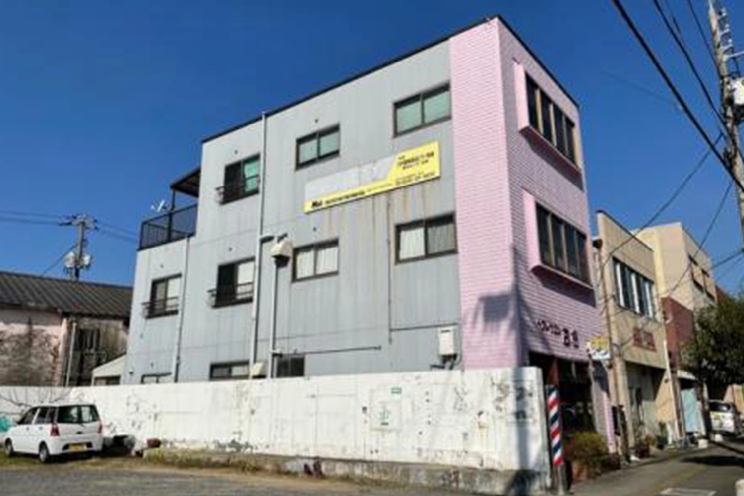 JR美祢駅近くのピンクの外観が特徴の会場です♪ 高橋理容店の2階にレッスン室があります。
